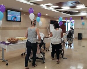בהמשך, נהנו המשתתפות מדוכנים מסחריים, כולל צילומי ניו-בורן לתינוקות הרכים, וכן מהרצאות בנושא הנקה נכונה ושיקום רצפת האגן מאת צוות אגף אימהות והמכון לפיזיותרפיה של הלל יפה.