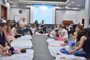 בהמשך נהנו המשתתפות, שהגיעו מלוות בתינוקותיהן, מהרצאות בהן יכלו לשאול שאלות ולקבל תשובות בנושא הנקה נכונה – הרצאה שהועברה על ידי תרצה רפאלוב, יועצת הנקה מוסמכת ואחראית לנושא באגף האימהות, ופיזיותרפיה, בדגש על הנושא החשוב של שיקום רצפת האגן – הרצאה שהועברה על ידי עדי סהר-לוקר, פיזיותרפיסטית משירות הפיזיותרפיה של בית החולים.