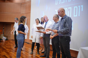 בהמשך, נשא דברים דיקן הפקולטה לרפואה בטכניון פרופ' עמי אהרונהיים, תוך ציון חשיבות קיום מחקר בימים בהם מדינת ישראל שרויה במלחמה, וההשפעה של מצב זה על ביצוע מחקרים ופרסומם. מנהל המרכז הרפואי ד"ר מיקי דודקביץ ציין גם הוא את מורכבות העשייה המחקרית והתובענות שלה, לצד הגאווה וההערכה הרבה לחוקרים.