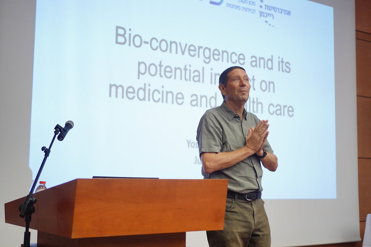 במהלך יום המחקר זכו הנוכחים להרצאה של מנהל מכון סקוג'ן לביולוגיה סינתטית באוניברסיטת רייכמן פרופ' יוסי שחם דיאמנט, על הפוטנציאל הגלום בשילוב תחום הביו-קונברג'נס (bio-convergence) ומדע הרפואה, ונתן דוגמאות כיצד ניתן לשלב טכנולוגיות חדשניות מתחומי הביולוגיה וההנדסה לצורך מתן מענה לאתגרים שטרם נפתרו בתחומי הרפואה.