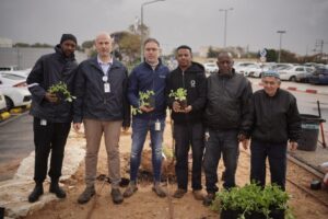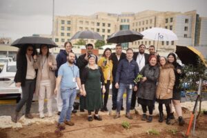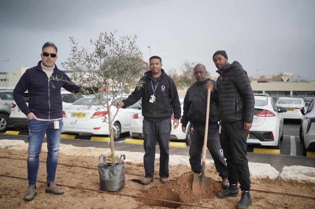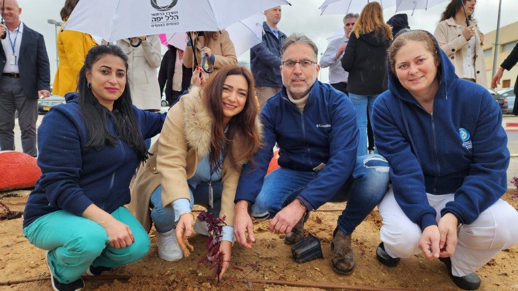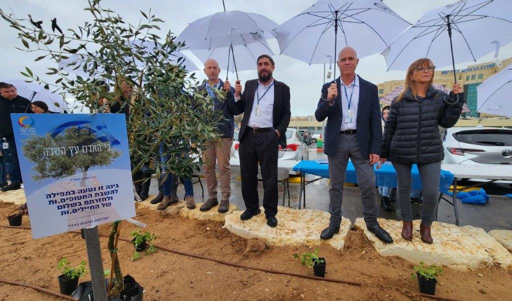 כמו בכל שנה, גם השנה התקבצו עובדי המרכז הרפואי הלל יפה לטקס הנטיעות המסורתי בט"ו בשבט. למרות הגשם השוטף, ותוך הצטיידות במטריות, הגיעו העובדים והעובדות לנטוע שתילים בגינה ייעודית ובתפילה להשבת החטופים והחטופות בעזה ולחזרתם של החיילים והחיילות שלנו בשלום משדה הקרב. עץ זית נשתל על ידי חברי הנהלת המרכז הרפואי ולצדו שלט המציין את ייעודה של הגינה.