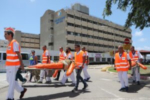 במהלך התרגיל, נפרש ברחבת המיון, תחת כיפת השמים, האזור שאליו יפונו כל המחלקות במקרה של רעידת אדמה אמיתית, במקרה שיידרש.